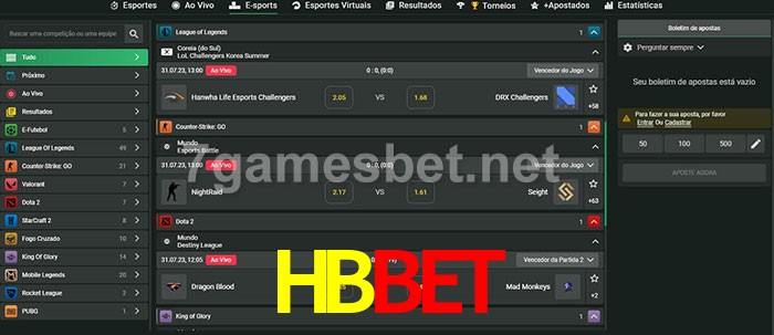 A aposta HBBet oferece aos jogadores a experiência mais conveniente de apostas em eSports!